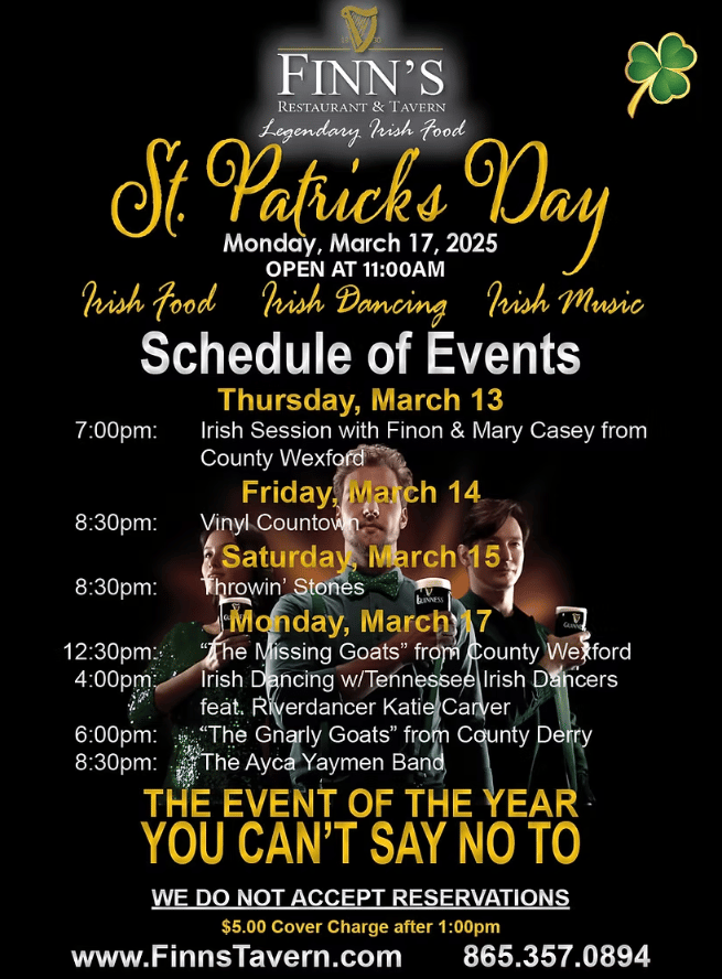 📰 St. Patrick’s Day Events at Finn’s Irish Tavern