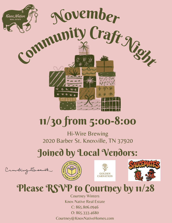 Kick off the holiday season with creativity, community, and festive fun at a free, drop-in Holiday Craft Night on November 30th, from 5:00 PM to 8:00 PM at Hi-Wire Brewing in South Knoxville. Hosted by Courtney Winters of Knox Native Real Estate, this relaxed evening is designed for friends, families, and anyone looking to ease into the Christmas spirit with hands-on activities and local shopping.