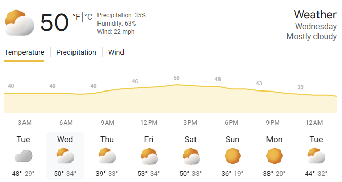 🌤️ Weather | Mostly Cloudy with a High of 50
