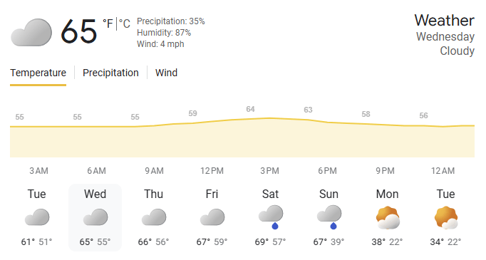 🌤️ Weather | Cloudy with a High of 65
