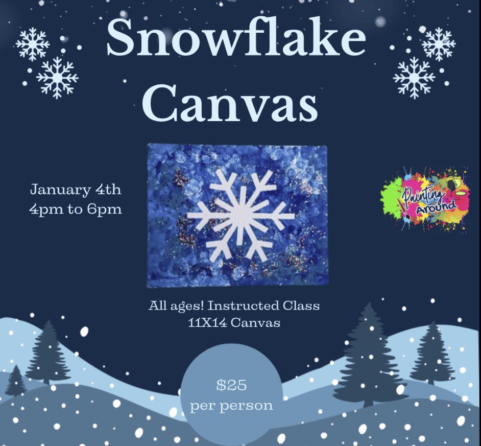 Participants will paint their own frosty snowflake masterpiece on an 11x14 canvas, guided step-by-step by a friendly instructor. No experience is needed—just bring your creativity. Like real snowflakes, no two paintings will be the same, making each finished piece truly one of a kind.