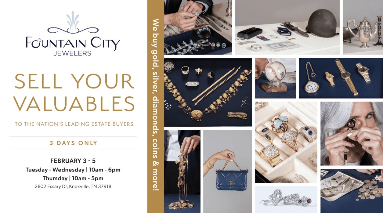 The event takes place February 3rd – 5th at Fountain City Jewelers (2802 Essary Drive). Guests are invited to bring in items for expert review in a relaxed, transparent setting. There’s no pressure to sell, and evaluations are completely free.