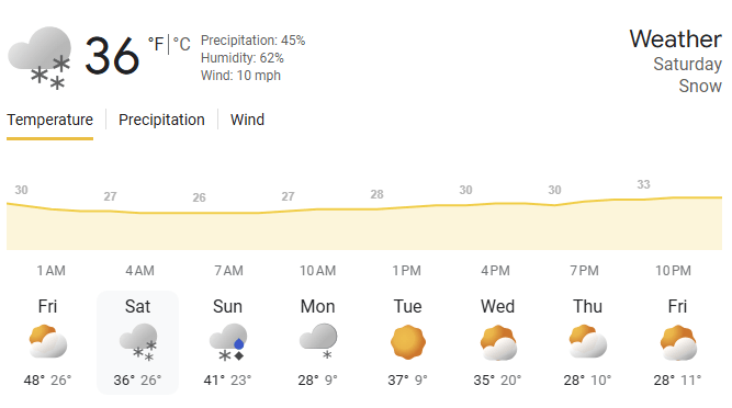 🌤️ Weather | Snow with a High of 36