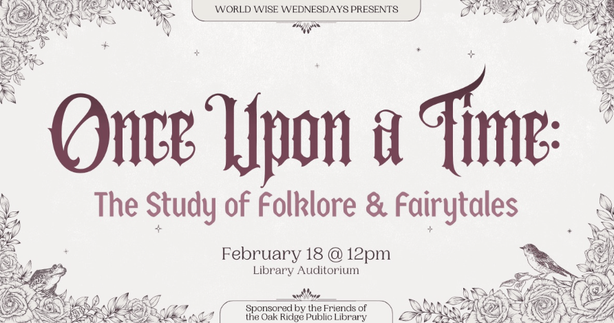 Step into a world of myth, magic, and meaning when the Oak Ridge Public Library hosts Once Upon a Time: The Study of Folklore and Fairytales on February 18th at noon in the Library Auditorium at the Oak Ridge Civic Center (1403 Oak Ridge Turnpike, Oak Ridge).
