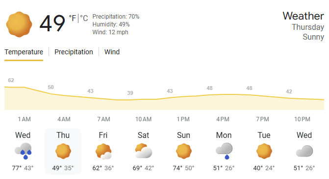 🌤️ Weather | Sunny with a High of 49