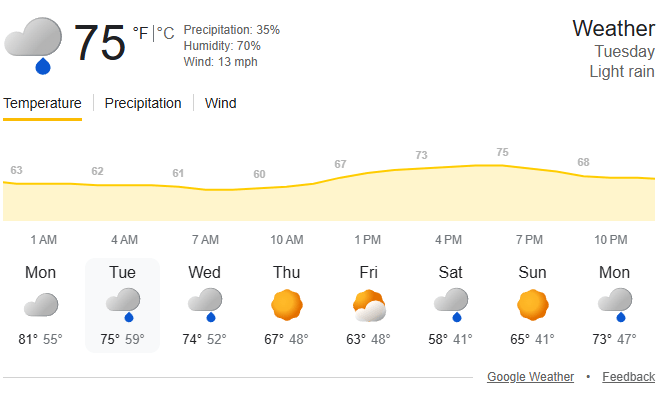 🌤️ Weather | Light Rain with a high of 79
